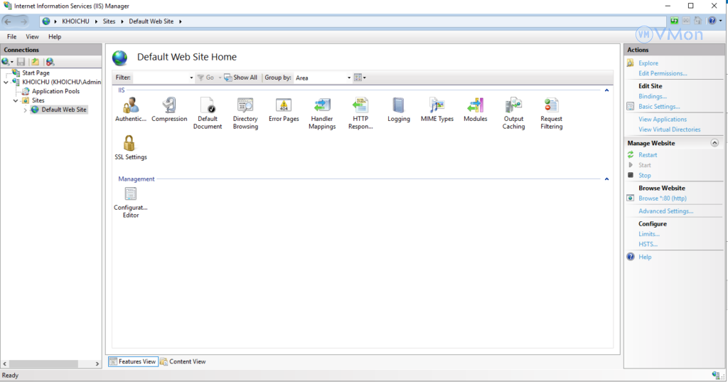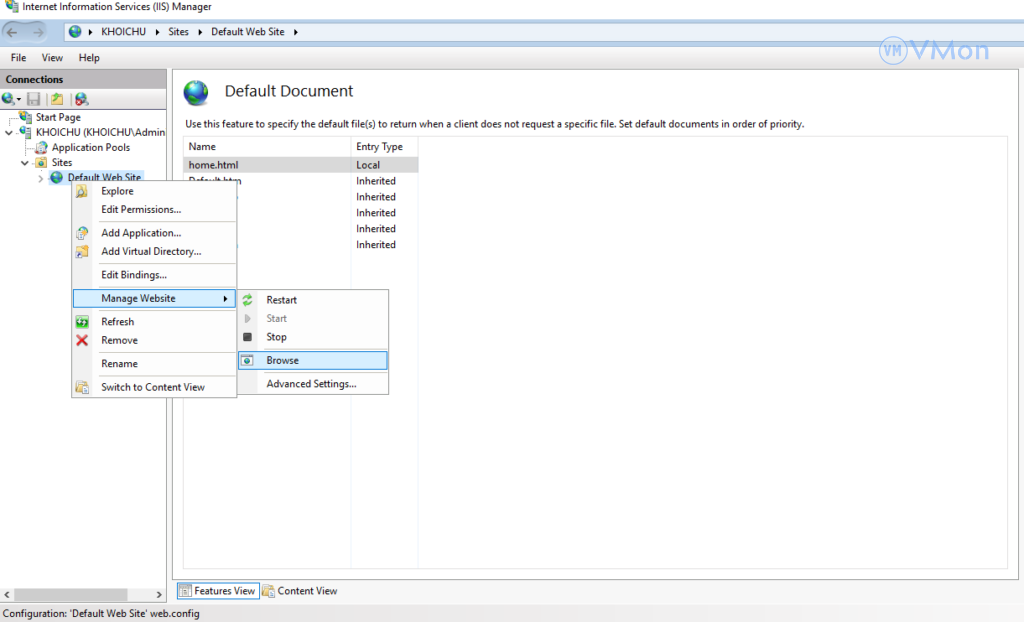 Hướng dẫn cách cấu hình Trang mặc định trong IIS Server 2019