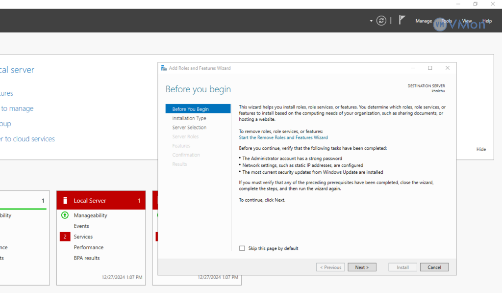 Chọn Manage > Add Roles and Features.