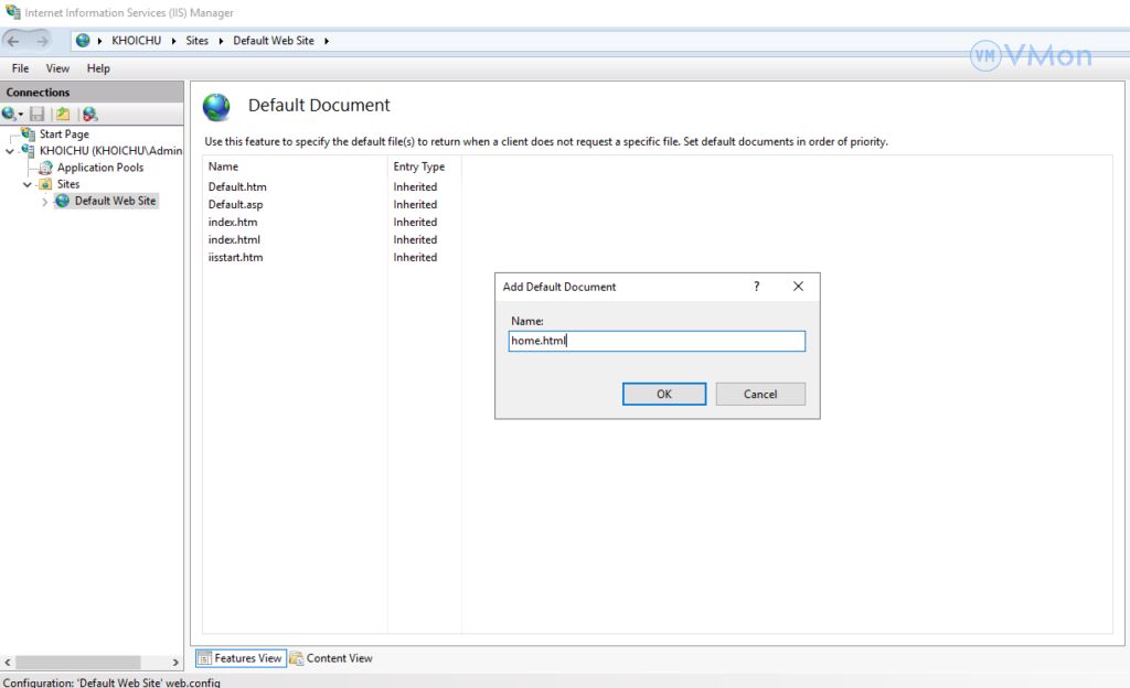 3. Cấu hình Trang mặc định trong IIS