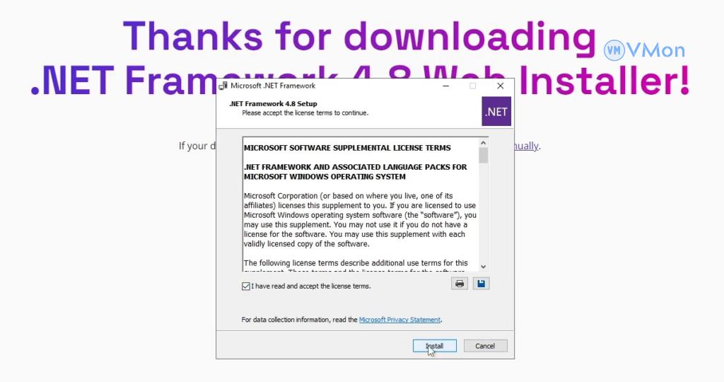 - Tải tệp cài đặt .NET Framework từ trang chính thức của Microsoft.