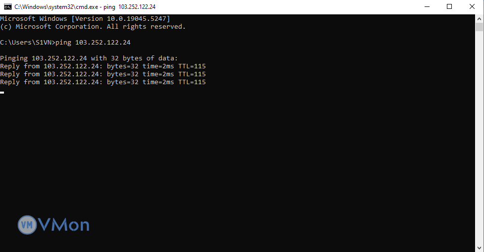 Mở Command Prompt trên máy tính của bạn và gõ lệnh: ping [địa chỉ IP của VPS]