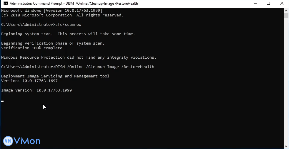 sfckhông khắc phục được lỗi, tiếp tục với lệnh:DISM /Online /Cleanup-Image /RestoreHealth - Lệnh này sửa chữa ảnh hệ thống bị lỗi và cập nhật các tệp hệ thống.