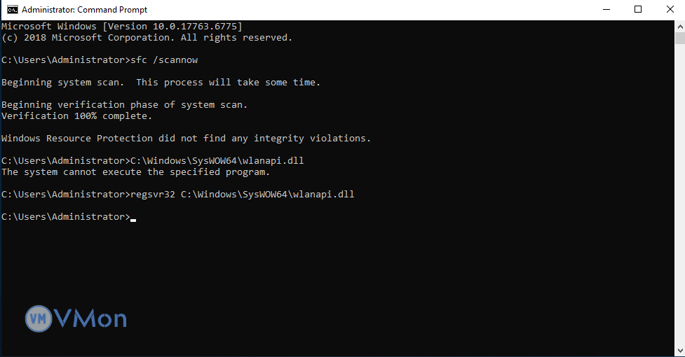 Nếu tệp wlanapi.dll bị hỏng, bạn có thể chạy lệnh SFC để sửa: