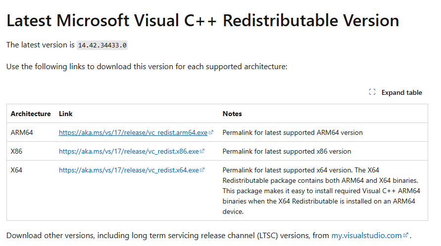 - Tải về Microsoft Visual C++ Redistributable từ trang chính thức của Microsoft.