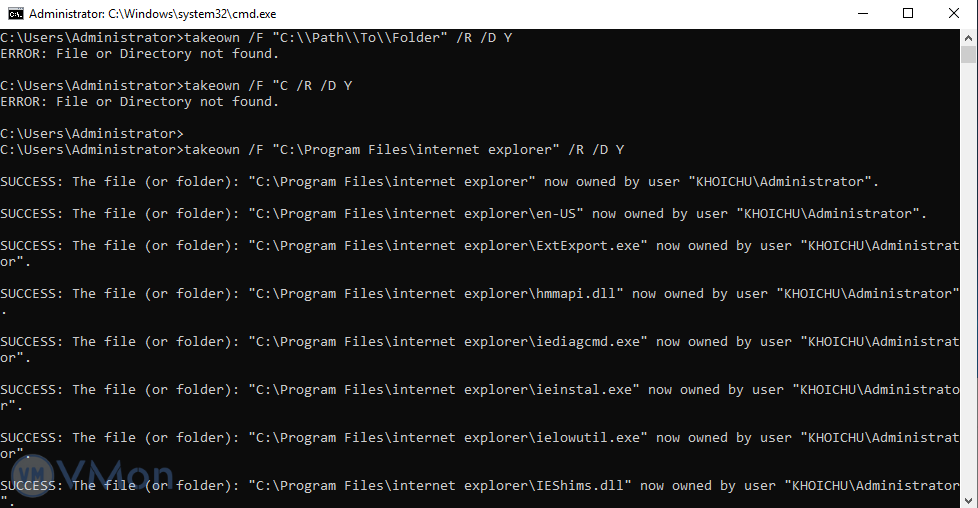Bước 2: Thay Đổi Chủ Sở (Take Ownership)