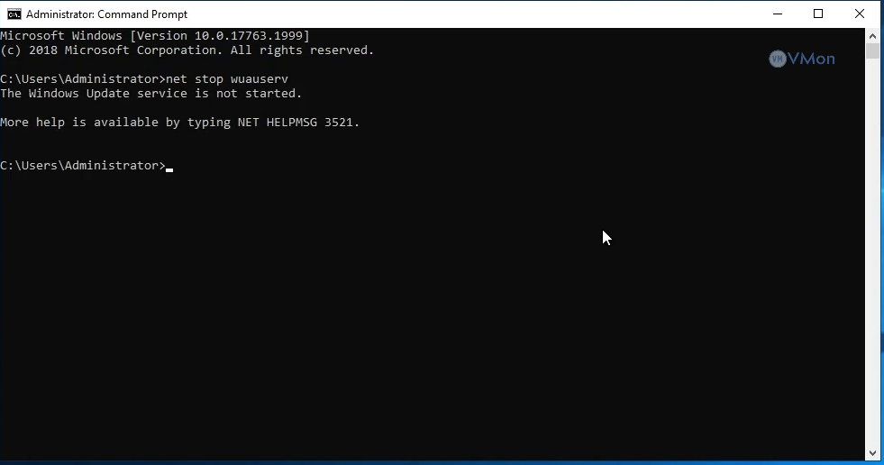 Dừng dịch vụ Windows Update: Gõ lệnh sau và nhấn Enter:net stop wuauserv