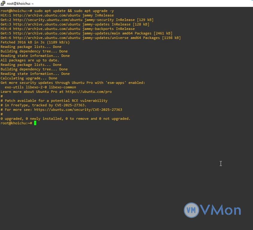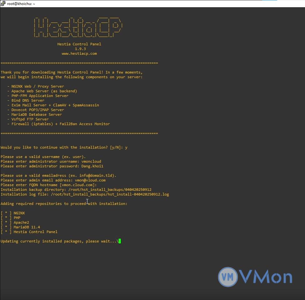 Trước khi cài đặt HestiaCP, hãy cập nhật hệ thống để đảm bảo các gói phần mềm mới nhất: