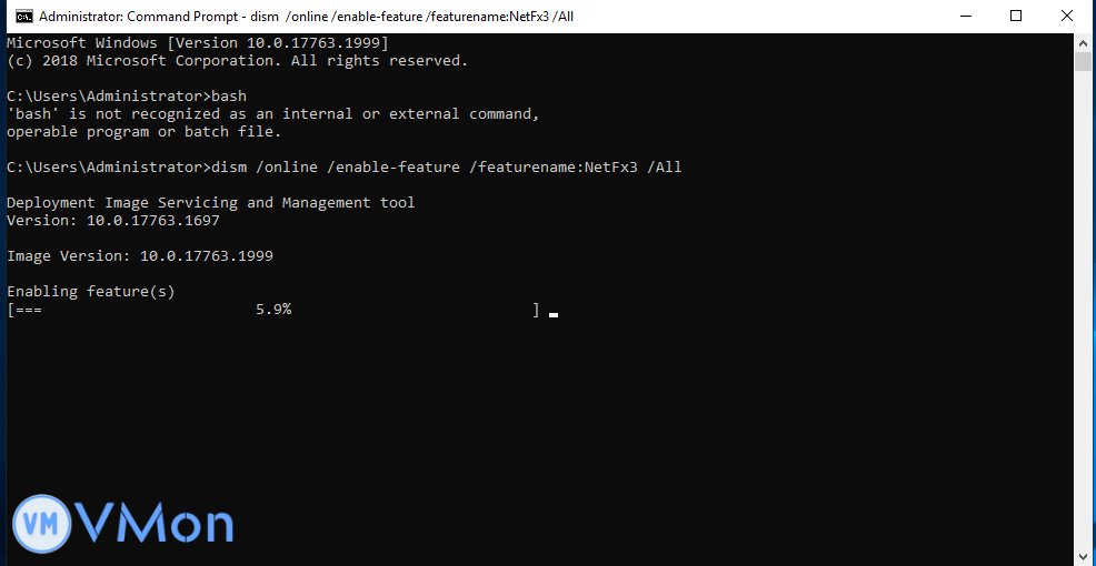 - Chạy lệnh cài đặt: Sử dụng lệnh sau để cài đặt .NET Framework 3.5: dism /online /enable-feature /featurename:NetFx3 /All