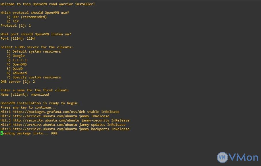 Bắt đầu cài đặt OpenVPN bằng cách chạy script: