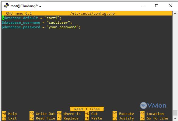 sudo nano /etc/cacti/config.php
