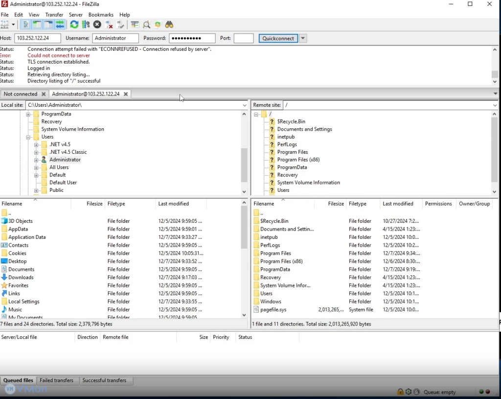 Dùng FileZilla Client hoặc phần mềm FTP khác để kết nối: