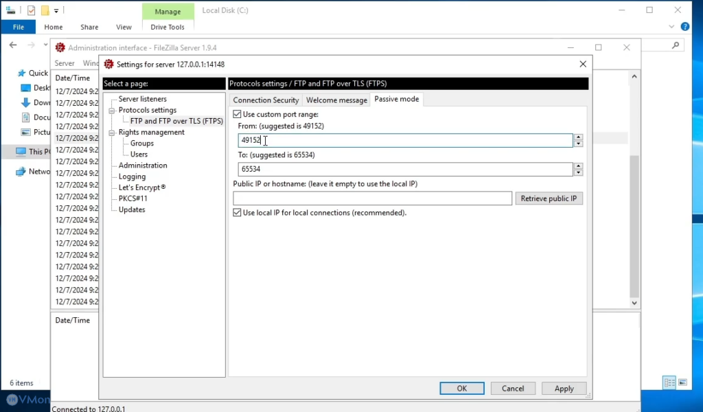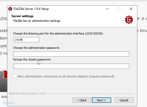• Tùy chỉnh cổng mặc định (thường là 14147) để quản trị FileZilla Server.