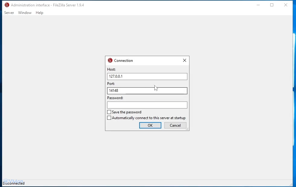 Bước 2: Khởi chạy và kết nối đến FileZilla Server