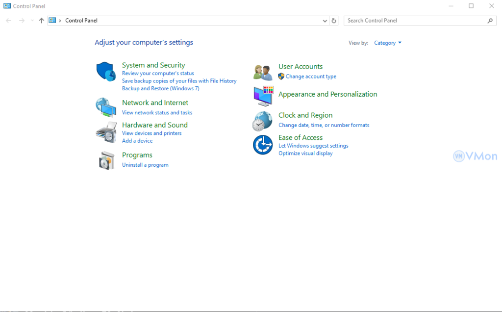 Mở Control Panel: