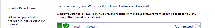 Nhấn vào Allow an app or feature through Windows Defender Firewall.