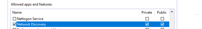 Đảm bảo rằng mục Network Discovery đã được bật ở cả hai cột Private và Public.