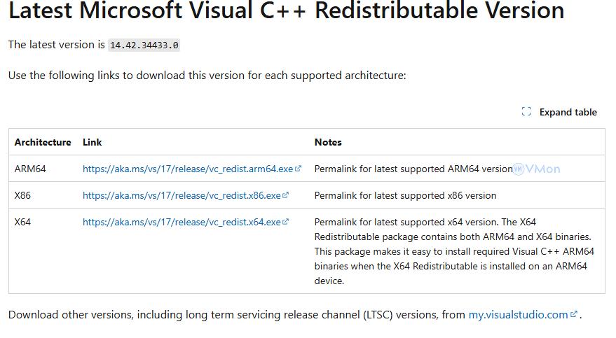 Bước 1: Truy cập trang tải Visual C++ Redistributable