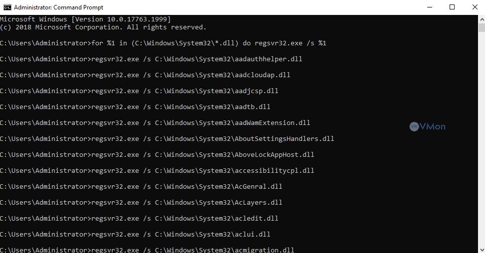 Bước 2: Chạy lệnh sau để đăng ký lại tất cả các tệp DLL: